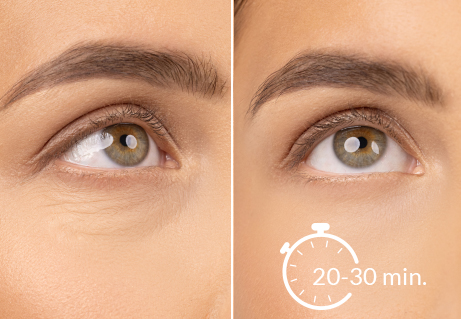 Formula obliža s sestavinami kot je kolagen, retinol, ceramidi in vitamin C učinkovito deluje proti staranju in kožo dobro nahrani. Že takoj po prvi uporabi je koža globoko navlažena, bolj gladka in napeta. Redna uporaba pomaga zmanjšati temne podočnjake in zabuhlost oči, izboljša čvrstost in hkrati posvetli kožo okoli oči. Zato boste videti mlajše in spočitega videza, kot da bi si privoščile tretma mezoterapije ali karboksiterapije.